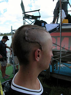 | 40 staples after a skiing accident - LINK |